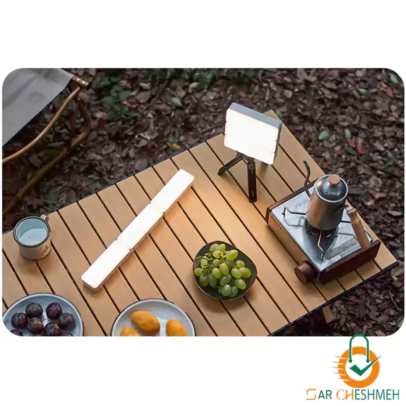 طراحی تاشو و قابل تنظیم: چراغ را میتوان به صورت خطی یا مربعی تنظیم کرد و طراحی تاشو آن حمل و نقل و استفاده را آسان میکند.